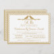 Esta invitación de aniversario de bodas de 50 años presenta dos siluetas de pájaros, un divisor decorativo y un borde de patrón dorado / marrón y blanco. Está listo para ser personalizado y es adecuado para un aniversario de bodas semi formal de 50 años.