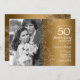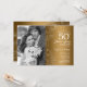 Invitación Aniversario 50 con foto - Floral blanco dorado