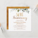 Invitación moderna para el 50 aniversario de bodas con un hermoso arreglo de follaje o vegetación en la parte superior del diseño y un encabezado de caligrafía con falso foil dorado. La parte trasera de la invitación también tiene una imagen con falso foil dorado. Este diseño para el 50 aniversario de bodas es una forma encantadora de invitar a los invitados a la celebración.