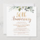Invitación Aniversario 50 Foliage Caligrafía Falso Oro