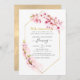 Invitación de aniversario de bodas de 50 años con acuarela rosa floral de primavera con flor de cerezo y marco geométrico dorado personalizable para los detalles de su evento.