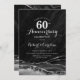 Invitación de aniversario 60 de mármol plateado y negro. Elegante diseño formal con fondo de mármol de ágata, plateado con brillo falso y fuente de escritura tipográfica. Tarjeta de invitación de moda perfecta para una celebración de aniversario de bodas con estilo. Invitaciones impresas de Zazzle o plantilla digital descargable instantáneamente.
