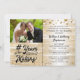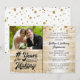 Celebre cualquier aniversario con invitaciones negras y doradas que presentan un diseño de título con tipografía caligráfica o retro # AÑOS EN CREACIÓN que incorpora cuántos años llevan casados (es decir, 50 AÑOS EN CREACIÓN) y el año de la boda dentro del diseño y su foto con un fondo degradado metálico dorado y blanco falso y borde de confeti. Contacte al diseñador a través de Zazzle Chat o makeitaboutyoustore@gmail.com si desea que se modifique este diseño, en otro esquema de color, en otro producto o si desea artículos coordinados.