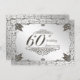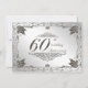 Una imagen de diseño de Digitalbcon que presenta un color plata platino y un tema de diseño floreado con una variedad de imágenes personalizadas, formas, patrones, estilos y fuentes en esta invitación de tarjeta de aniversario de bodas de diamante de 60 años única. Esta elegante y atractiva tarjeta de invitación viene completa con un diseño complementario en el reverso con letras de texto personalizadas para adaptarse a su ocasión especial.