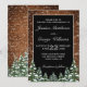 Tarjeta de invitación de aniversario de boda. Madera marrón rústica, fondo nevado y bosque nevado. Acogedor estilo campestre vintage. Más artículos están disponibles en este estilo en nuestra tienda. Puede editar el diseño más a fondo, cambiar colores, fuentes y agregar texto adicional haciendo clic en el enlace "personalizar más".