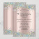 Un diseño moderno, chic y glamuroso con confeti colorido sobre un fondo de oro rosa.