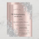 Un diseño moderno, chic y glamuroso con gotas de brillo plateadas sobre un fondo dorado rosa.