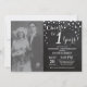 Aniversario de bodas con foto personalizada. Invitación de Pizarra Negra y Plateada. Fondo de Diamante con Purpurina Negra y Plateada. Confeti Plateado. Cumpleaños de Adulto. Fiesta de Cumpleaños para Hombre o Mujer. Para personalizar aún más, haga clic en el botón "Personalizar" y use nuestra herramienta de diseño para modificar esta plantilla.