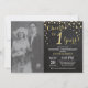 Aniversario de bodas con foto personalizada. Invitación de Pizarra Negro y Dorado. Fondo de Diamante Brillante Negro y Dorado. Confeti Dorado. Cumpleaños de Adultos. Fiesta de Cumpleaños para Hombre o Mujer. Para personalizar aún más, haga clic en el botón "Personalizar" y use nuestra herramienta de diseño para modificar esta plantilla.