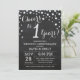 Invitación de aniversario de bodas 1 tiza negra y plateada. Fondo de diamante de purpurina negra y plateada de tiza. Confeti plateado. Cumpleaños de adulto. Fiesta de cumpleaños de mujer o hombre. Para una mayor personalización, haga clic en el botón "Personalízalo" y use nuestra herramienta de diseño para modificar esta plantilla.