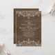 Invitaciones de aniversario de bodas de 20 años de encaje de madera rústica campestre y perlas. Personalizadas según los detalles de su celebración. Cuenta con hermoso encaje, perlas y tipografía sobre un fondo de madera oscura rústica. Grandes invitaciones de aniversario de bodas elegantes para aniversarios campestres creativos. Esta invitación de aniversario de bodas está diseñada por superdazzle.com