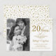 Invitación de Aniversario de Bodas 20 con Foto. Diseño elegante en oro y blanco con letra script y confeti. Se puede personalizar para mostrar cualquier año de matrimonio. ¡Salud por 20 años!