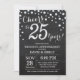 Invitación Aniversario de bodas 25 Chalkboard Negro Plateado
