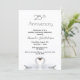 Una simple y elegante invitación para el aniversario de bodas de plata número 25 con el amor como tema. Dos hermosos cisnes doblando sus cabezas juntos y formando un corazón. Fondo blanco. Plantillas para nombres y detalles de la fiesta. Letras negras. Reverso: Patrón abstracto gris y blanco.
