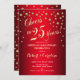 Diseño elegante con rojo intenso, negro y falso oro. ¡Salud por 25 Años! Perfecto para una fiesta elegante.