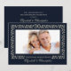 Elegantes invitaciones para el 30 aniversario de bodas con diseño de marco de hoja con brillo plateado y azul marino. Agregue su propia imagen y personalice los nombres, fecha y todos los detalles de sus invitaciones. Tarjetas, favores y regalos a juego disponibles en la categoría Aniversario de bodas de nuestra tienda.