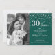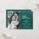 Invitación de Aniversario de Bodas 30 años con Foto. Diseño elegante en plata y verde esmeralda con letra script y confeti. Se puede personalizar para mostrar cualquier año de matrimonio. ¡Salud por 30 años!