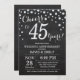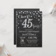 Invitación de Aniversario de Bodas 45 años Pizarra Negro y Plateado. Aniversario de Bodas Cuarenta y Cinco. Fondo de Diamante Brillante Negro y Plateado de Pizarra. Confeti Plateado. Cumpleaños de Adulto. Fiesta de Cumpleaños de Mujer o Hombre. Para personalizar aún más, haga clic en el botón "Personalizar" y use nuestra herramienta de diseño para modificar esta plantilla.