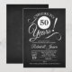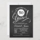 Invitación de aniversario de 50 años con patrón de pizarra negra y tipografía script blanca. ¡Salud por 50 años! Perfecto para una celebración elegante.