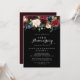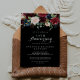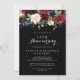 Esta invitación de aniversario de bodas de 50 años con diseño botánico negro rústico es perfecta para una celebración clásica de matrimonio. El diseño presenta flores radiantes y elegantes pintadas a mano en burgundy, rojo, navy, azul y blush sobre un fondo negro, inspirando belleza natural.