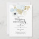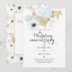 Esta invitación de aniversario de boda ilustrada con acuarela de flores blancas escarchadas y azules marino, con tema de hojas doradas, te permite suficiente espacio para agregar detalles adicionales de la boda (plantillas de texto en la parte frontal y en el reverso) ahorrando en insertos adicionales, pero manteniendo la calidad y la elegancia. Para artículos adicionales y ediciones personalizadas, contacta con la diseñadora LeahG.