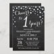 Invitación de Aniversario de Bodas de 1 año Pizarra Negro y Plateado. Fondo de Diamante Brillante Negro y Plateado. Confeti Plateado. Cumpleaños de Adulto. Fiesta de Cumpleaños para Hombre o Mujer. Para personalizar aún más, haga clic en el botón "Personalizar" y use nuestra herramienta de diseño para modificar esta plantilla.