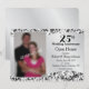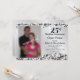 Esta invitación para el 25 aniversario de bodas presenta un patrón de damasco negro en espiral como fondo, una franja plateada ondulada en el centro y un marco de foto personalizable. El texto personalizable le permite agregar los detalles de su invitación.