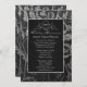 Elegante invitación de aniversario de bodas vigésimo quinto en damasco floral negro y plata con borde de acento plateado para celebrar esa fecha especial de veinticinco años juntos. Personalice el frente de la invitación con la hora, fecha, ubicación y otra información.