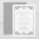 Una invitación de celebración de aniversario de bodas de 25 años con un diseño de rollo de plata floreado vintage. Personalice con los detalles de su fiesta. Seleccione el botón personalizar para cambiar el estilo, color y tamaño de la letra.
