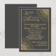 Invitación de aniversario de bodas de 50 años con adorno dorado en espiral sobre fondo gris pizarra.