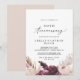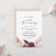 Esta invitación de aniversario de bodas de 50 años con hierba de Pampas boho es perfecta para una fiesta de aniversario de verano. El diseño de acuarela floral presenta flores bohemias de color burdeos y rosa desmayado con ramitas de hierba de Pampas neutra y hojas de palma secas doradas.