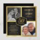 Cree sus propias invitaciones elegantes de oro y negro para la fiesta de aniversario de bodas de 50 años con inserciones de fotos "entonces y ahora" -- Personalice el nombre, la fecha y los detalles para su aniversario de bodas de oro o cualquier celebración de aniversario especial. Se puede personalizar fácilmente para otras ocasiones especiales -- 10º, 15º, 20º, 30º, 35º, 40º, 45º, 50, 55º, 60º, 65º. **NOTA: Tamaño para tarjetas de invitación CUADRADAS -- se requiere franqueo adicional. Otros tamaños y estilos disponibles.