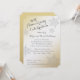 Invitación de aniversario de bodas de 50 años dorada con diseño de copos de nieve plateados.