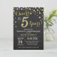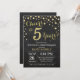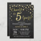 Invitación de Aniversario de Bodas de 5 años Pizarra Negro y Dorado. Quinto Aniversario de Bodas. Fondo de Diamante Brillante Negro y Dorado. Confeti Dorado. Cumpleaños de Adulto. Fiesta de Cumpleaños de Hombre o Mujer. Para personalizar aún más, haga clic en el botón "Personalizar" y use nuestra herramienta de diseño para modificar esta plantilla.