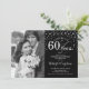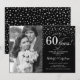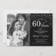 Invitación de Aniversario de Bodas de 60 años con Foto. Diseño elegante en plateado y negro con fuente de escritura y confeti de diamantes. Se puede personalizar para mostrar cualquier año de matrimonio. ¡Salud por 60 años!