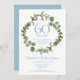 Con una elegante guirnalda floral de vegetación, esta invitación de aniversario de bodas de 60 años chic botánica se puede personalizar con los detalles de su aniversario de diamante especial. El reverso presenta una guirnalda a juego que enmarca las fechas de su aniversario en elegante texto blanco sobre un fondo azul diamante. Diseñado por Thisisnotme©