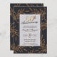 Invite a su familia y amigos a celebrar su aniversario de bodas número 50 con estas elegantes invitaciones que presentan elementos florales dorados sobre un fondo oscuro. Escritura dorada del 50 y detalles en letra moderna de moda.