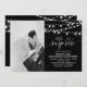Celebra tu día especial con esta invitación personalizada de aniversario de bodas con foto. Este diseño presenta hermosa tipografía "shhh...es una sorpresa" y luces de cuerda en un fondo negro. Puedes personalizar el texto para cualquier año. Reemplaza la foto de muestra con tu propia foto. Suministros para fiestas a juego disponibles en mi tienda BaraBomDesign.