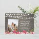 Celebre su día especial con esta invitación de aniversario de bodas personalizada con foto. Este diseño presenta hermosas flores rojas y rosadas y luces de cuerda en un fondo de madera rústica. Puede personalizar el texto para cualquier año. Reemplace la foto de muestra con su propia foto. Suministros para fiestas a juego disponibles en mi tienda BaraBomDesign.