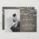 Celebre su día especial con esta invitación personalizada de aniversario de bodas con foto. Este diseño presenta hermosa tipografía "shhh... es una sorpresa" y luces de cuerda en un fondo de madera rústica. Puede personalizar el texto para cualquier año. Reemplace la foto de muestra con su propia foto. Suministros para fiestas a juego disponibles en mi tienda BaraBomDesign.