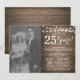 Invitación de Aniversario de Bodas número 25 con foto personalizada. Fondo de Madera Rústica. Luces de Cadena. Blanco y Negro. 1º, 2º, 3º, 4º, 5º, 10º, 15º, 20º, 25º, 30º, 35º, 40º, 45º, 50º, 55º, 60º, 65º, 70º, 75º, 80º, Cualquier año. Cumpleaños adulto. Fiesta de Cumpleaños para Mujer o Hombre. Para personalizar aún más, haga clic en el botón "Personalizar" y use nuestra herramienta de diseño para modificar esta plantilla.