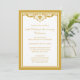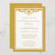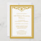 Una invitación de celebración de aniversario de bodas de 50 años con un diseño tradicional de florituras doradas y blancas. Personalice con los detalles de su fiesta.