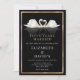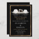 Hermosos cisnes pintados sobre negro, tema blanco y dorado para invitación de aniversario dorado. Elegante y único.