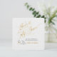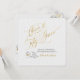 De nuestros aplausos a cincuenta años Colección del 50 aniversario de bodas con rayas diagonales en gris plateado sobre blanco, rosas blancas con hojas doradas y tipografía de hoja de oro falsa con detalles del evento en la parte posterior y nombre de la pareja y fecha del evento en la parte delantera.