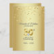 Tarjetas de invitación de aniversario de bodas de oro 50 elegantes y modernas. Hoja de oro falso y confeti con gran 50 con corazón de diamante falso en el medio. Personalice estas tarjetas de aniversarios de boda con su información. Fácil de editar. Ver colección coincidente; stickers, servilletas, etiquetas, etc