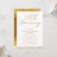 Sencilla invitación de aniversario de bodas de oro con caligrafía en oro falsa con una fuente de caligrafía moderna y textura de brillo dorado en la base del diseño.