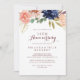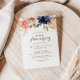 Esta invitación de aniversario de bodas de oro con caligrafía en oro rústico es perfecta para un aniversario de bodas moderno. El diseño presenta flores de color púrpura, azul marino, rosa, burdeos, hojas verdes y doradas dibujadas a mano con acuarela.