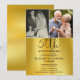 Una elegante invitación de aniversario de bodas de 50 años, con 2 fotos especiales y tipografía elegante sobre un fondo con efecto de lámina dorada. Diseñada por Thisisnotme©