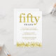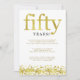 Esta elegante invitación para la fiesta de aniversario de bodas de cincuenta años dice "cincuenta" en texto de falso oro, y tiene una frontera de confeti de falso oro en la parte inferior.