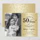 Invitación de Bodas de Oro con Foto. Diseño elegante en dorado con letra script y confeti. Se puede personalizar para mostrar cualquier año de matrimonio. ¡Salud por 50 años!